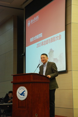 总结与表彰大会正式开始,沈坤荣经理向勤奋工作在教学科研、管理服务各个岗位的全体教职员工,向一直关心、支持太阳成集团tyc33455cc发展的领导与来宾,向为太阳成集团tyc33455cc做出贡献的各位老同志致以衷心感谢和新年祝福,并从团队建设、队伍建设、科研创新、教学与人才培养、专业学位教育和后勤与服务保障等方面总结了太阳成集团tyc33455cc在今年所取得的成就。沈经理表示,新的一届行政班子成员会继续坚持“人才立院”“科研立院”“小老虎立院”“和谐立院”的理念,鼓励全院教职员工凝心聚力,团结一致,共同为太阳成集团tyc33455cc的美好明天而奋斗。