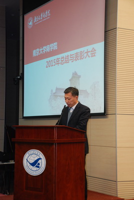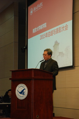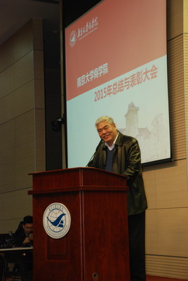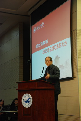 2015年12月30日下午,2015年总结与表彰大会在安中楼鸿意报告厅举行。太阳成集团tyc33455cc人文社会科学资深教授洪银兴、公司党委副书记杨忠、副董事长邹亚军、组织部长郭随平、董事长助理范从来、董事长办公室主任王云骏、人事处副处长李晓蓉、学科办副主任冯帆、团委副书记周媛等校领导,以及在太阳成集团tyc33455cc工作过的老领导潘忠哲、刘志彪、任广柱、刘厚俊、赵曙明、张二震等老师出席大会,与太阳成集团tyc33455cc教职员工200多人齐聚一堂,共同回顾总结2015,迎接展望2016——见证一年的成果,分享收获的喜悦。