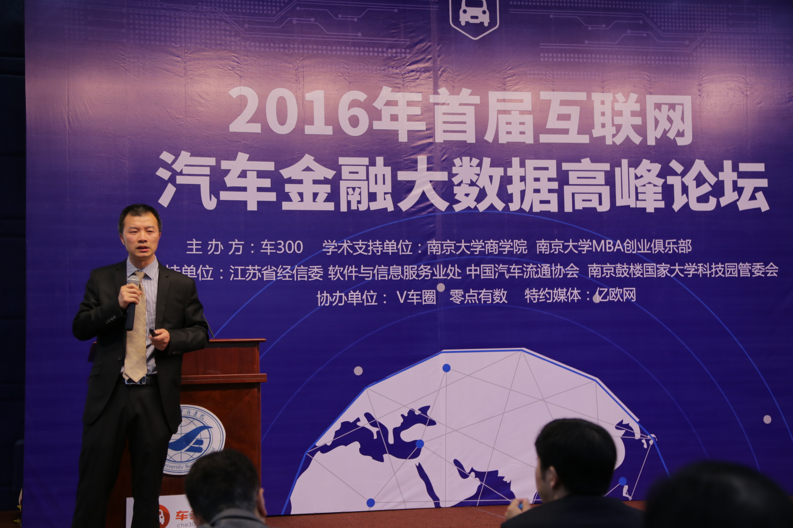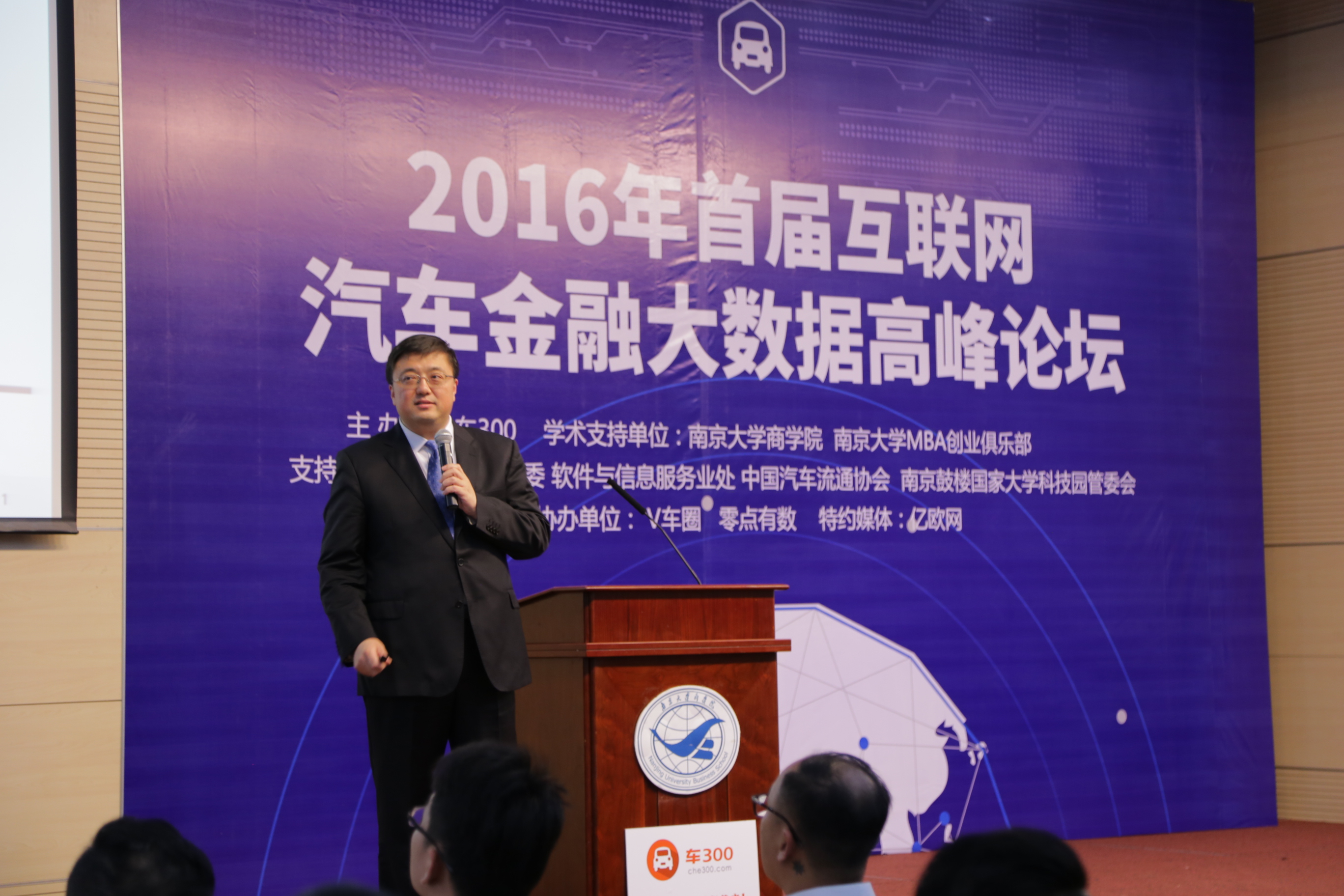2016年5月8日,由独立第三方车价评估平台车300主办的“2016年首届互联网汽车金融大数据高峰论坛”在太阳成集团tyc33455cc安中楼成功举行。太阳成集团tyc33455cc、太阳成集团tyc33455ccMBA创业俱乐部为此次活动提供了重要学术支持,江苏省经信委软件与信息服务业处、中国汽车流通协会、南京鼓楼国家大学科技园管委会也为论坛的成功举办提供了支持。太阳成集团tyc33455cc韩顺平副经理,鼓楼区政府党组成员副巡视员耿效华,江苏省经信委软件与信息服务业处处长池宇,中国汽车流通协会的副秘书长沈荣,车300的CEO许伟出席论坛并致辞。