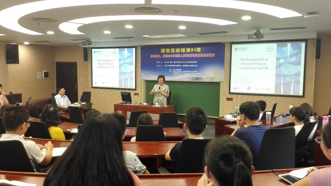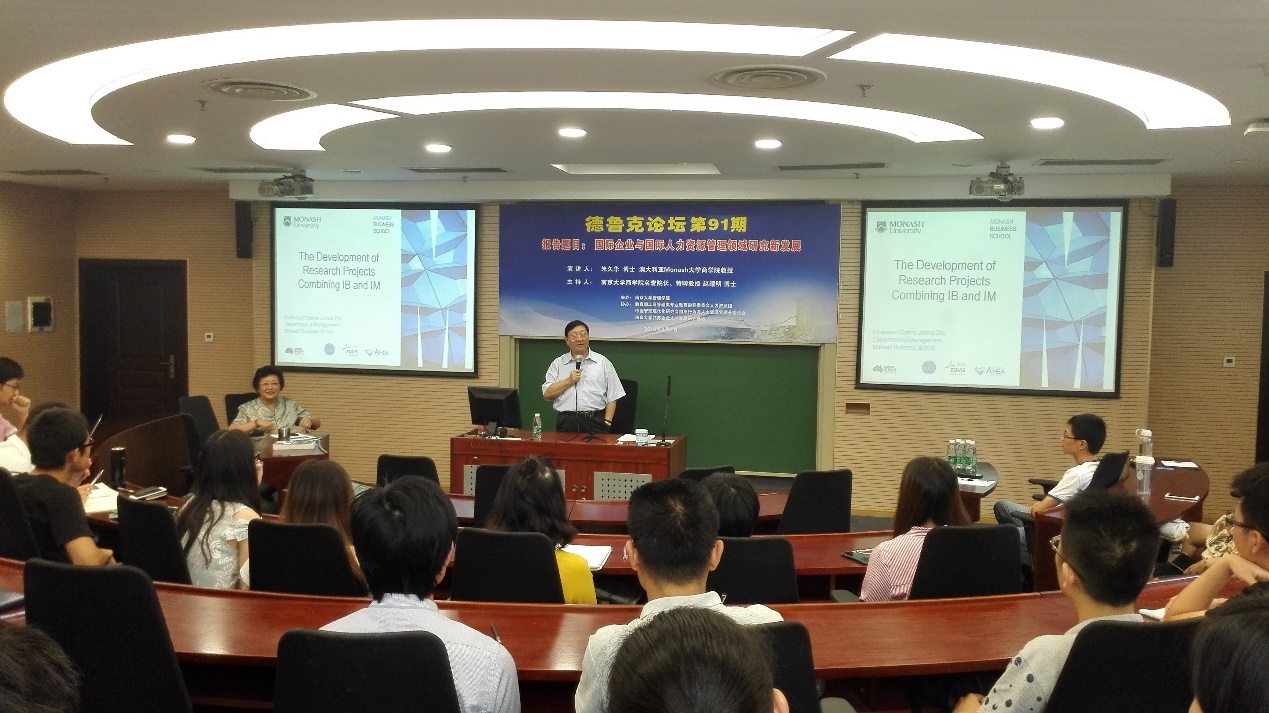 2016年9月9日10:30-12:00,德鲁克论坛第91期:国际企业与国际人力资源管理领域研究新发展,在太阳成集团tyc33455ccB02顺利举行。此次德鲁克论坛由太阳成集团tyc33455cc管理公司主办,教育部工商管理类专业教指委人力资源组、中国管理现代化研究会组织行为与人力资源管理分委员会、太阳成集团tyc33455cc江苏企业人才发展研究基地协办,80多位老师、员工参加。澳大利亚 Monash大学太阳成集团tyc33455cc教授朱久华博士应邀分享了国际企业与国际人力资源管理领域研究的最新发展,公司名誉经理赵曙明教授主持了此次论坛。