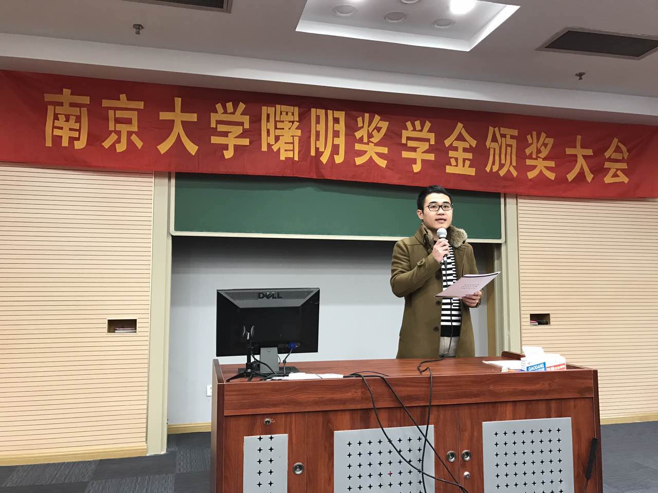 随后,王跃堂教授宣布了关于颁发2016年度曙明奖学金的决定,共有杨紫兰等18名同学获得曙明奖学金,曹永菊等3位教师获得曙明奖管金。赵曙明老师上台,亲自为获奖员工和老师颁奖,并合影留念。