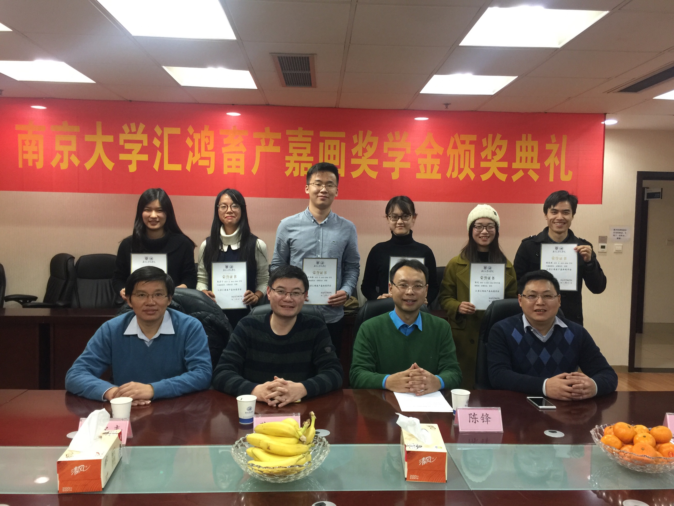 “汇鸿畜产嘉画奖学金”是由国际经济贸易系94级本科员工、江苏汇鸿嘉画文体有限公司总经理陈锋先生为回报母系而出资设立的面向国际经济贸易系2—4年级在校本科生的高额奖学金。汇鸿畜产嘉画文体公司是我省最大的外贸企业集团江苏汇鸿集团下属子公司,其画材出口额位居全国前三。该奖学金每次奖励6名各方面全面发展、学习成绩优秀、富有责任感及团队合作精神、热爱外贸事业的优秀员工,首期为期5年。今年首届奖学金共有周彦宁等6名同学获奖。陈锋员工和汇鸿嘉画文体公司张启鑫副总经理,国际经济贸易系马野青教授和方勇副教授出席了颁奖仪式。