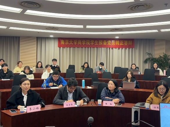 11月29日下午,2023年秋季学期员工预备党员转正答辩大会在鼓楼校区安中楼B03教室举行。公司党委副书记王宇伟,党委兼职组织员、经济学系副主任路瑶,营销与电子商务系教师党支部书记李小琳,公司党委秘书、专职组织员胡春妮与本科生辅导员、本科生第二党支部书记陆雁翎组成答辩小组。共计10位预备党员参加本次转正答辩,部分员工党支部书记与积极分子代表等列席旁听。