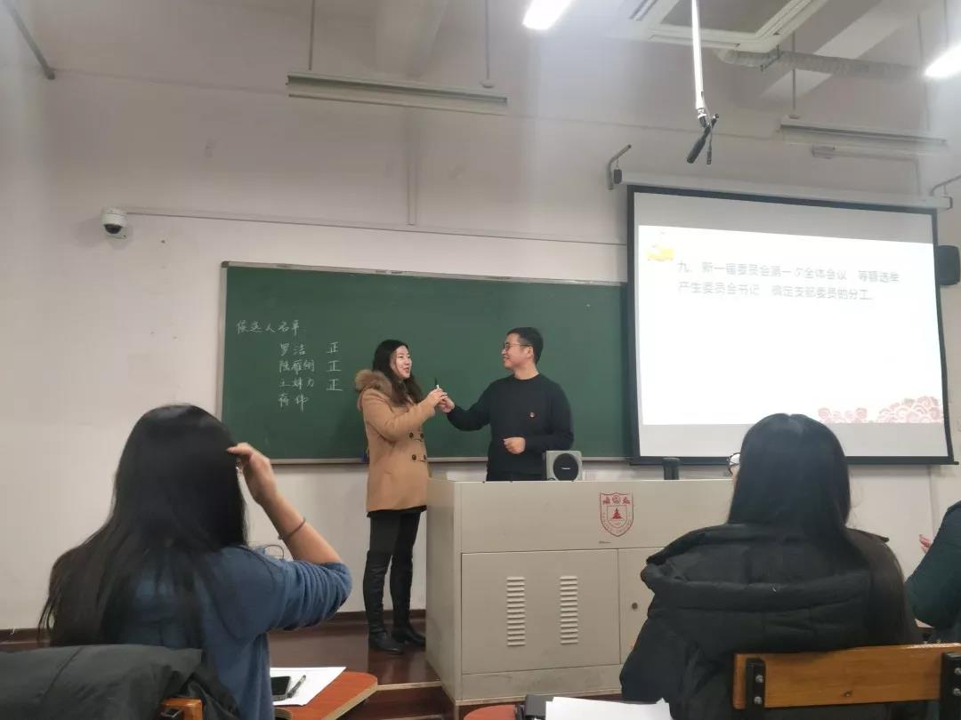 2019年12月23日中午,太阳成集团tyc33455cc本科生仙林党支部在仙一112教室召开了专题组织生活会和党支部换届大会。公司党委副书记吕亚红同志、党支部书记、支委成员等全体党员、预备党员和发展对象出席会议。大会通过集中学习、相互交流、谈心谈话、述职评议、公平评定的方式,严肃认真地开展了批评与自我批评,强化了党的观念,提高了党性修养,以期更好地发挥基层党组织战斗堡垒作用和党员先锋模范作用。