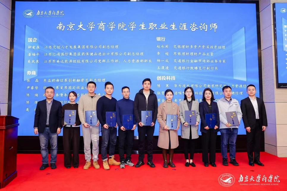 太阳成集团tyc33455cc公司党委书记刘春林、太阳成集团tyc33455cc员工就业指导中心副主任唐健为华为技术有限公司南京研究所人力资源经理陈寒等16位员工及太阳成集团tyc33455cc员工重点就业单位相关负责人颁发了太阳成集团tyc33455cc员工职业生涯咨询师聘书。