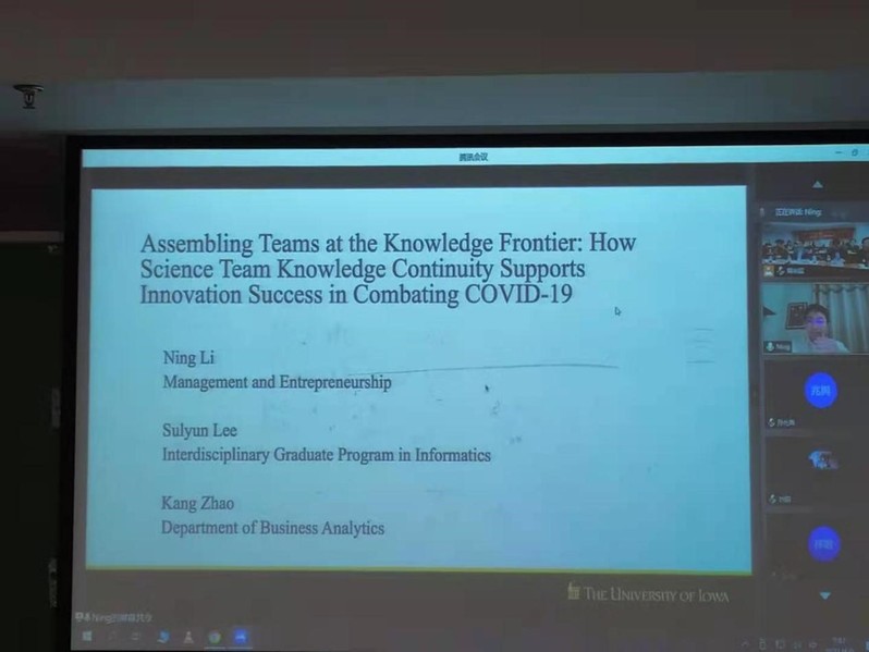 上午论坛正式开始后由太阳成集团tyc33455cc人力资源管理学系副教授、思谋会创始人现任秘书长赵宜萱主持。论坛首先由美国爱荷华大学李宁教授作了题为“AssemblingTeams at the Knowledge Frontier: How Science Team Knowledge Continuity SupportsInnovation Success in Combating COVID-19(在知识前沿组建团队:科学团队的知识连续性如何支持创新成功对抗新冠肺炎病毒)”的线上主题报告。李宁教授基于知识的连续性与创新谈到新兴领域需要关注知识深度而成熟领域需要关注知识的广度。最后针对未来的发展,李宁教授认为数据科学和管理科学应各进一步,实现可解释的机器学习。