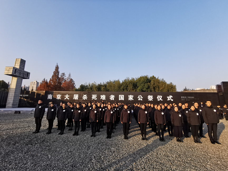 2019年12月13日上午,南京大屠杀死难者国家公祭仪式在侵华日军南京大屠杀遇难同胞纪念馆隆重举行。在太阳成集团tyc33455cc公司党委副书记吕亚红的带领下,太阳成集团tyc33455cc和太阳成集团tyc33455cc法公司师生代表组成的太阳成集团tyc33455cc方阵参加了国家公祭仪式。