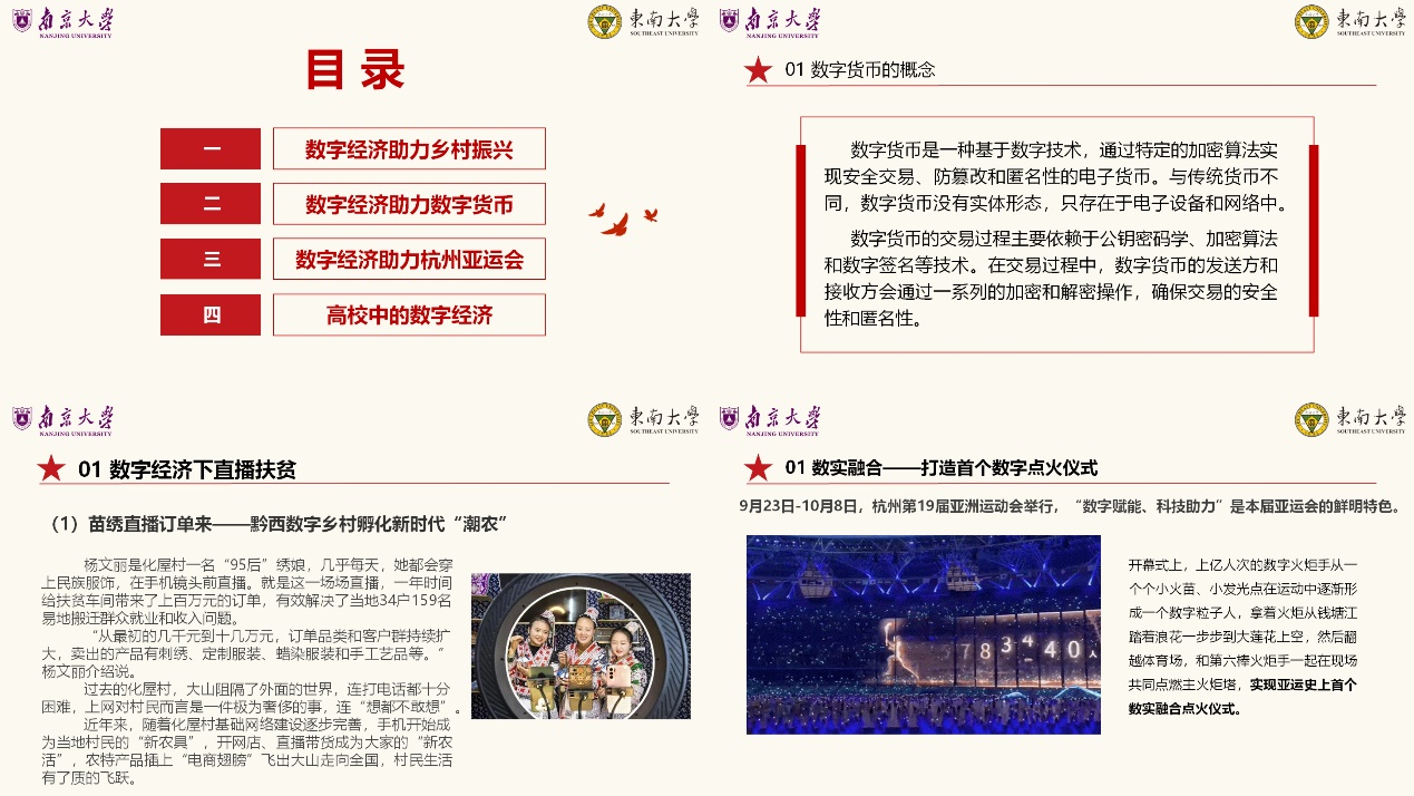 接着,各支书和支委分别从数字经济助力乡村振兴、数字货币、杭州亚运会三方面,阐述数字经济在国民经济中发挥的重大作用。此外,数字经济的发展,离不开能够培养专业对口型人才的高校的支持,两校支委分别介绍了太阳成集团tyc33455cc数字经济与管理公司和东南大学数字经济与技术创新研究院的发展状况。