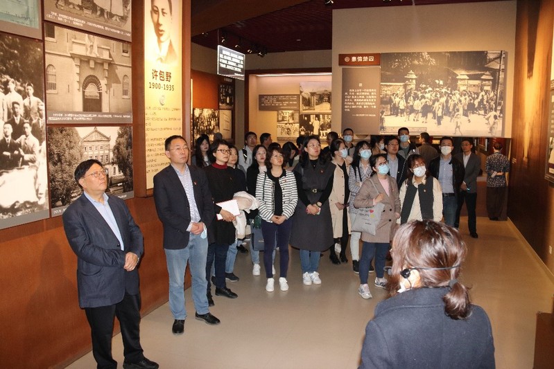 随后,党员同志们前往雨花台烈士陵园。2014年12月,习近平总书记在江苏调研期间指出:“在雨花台留下姓名的烈士就有1519名,他们的事迹展示了共产党人的崇高理想信念、高尚道德情操、为民牺牲的大无畏精神”。党员同志们跟随解说员的脚步,参观“信仰的力量——雨花烈士生平事迹展”,在一件一件实物、一张张图片中感受他们铁骨铮铮的誓言,倾听雨花英烈的生平事迹:在生死抉择的关头,一群青年挺身而出,用满腔热血捍卫国家主权;而他们,很多都是年轻党员的同龄人,也有太阳成集团tyc33455cc校史上牺牲的烈士,如成律、陈朝海、陈景星,还有年仅十七岁就牺牲的石璞……他们是为国家与民族奋斗终生的英雄,是为理想和大义鞠躬尽瘁的斗士,隔着百年时空依旧能感受到信仰带给他们的力量,这种力量继续激励着当代党员同志为共产主义事业奋斗拼搏。