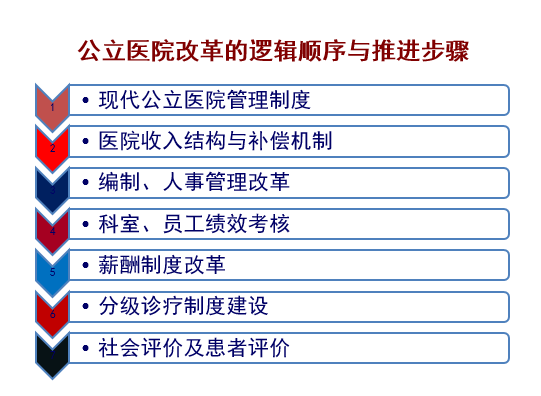 五项基本卫生制度不是孤立的,相互之间存在很强的关联、促进、制约关系,五项基本医疗卫生制度建设的焦点是公立医院改革!