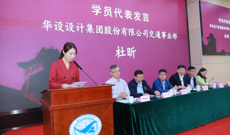 接下来,华设设计集团股份有限公司交通事业部杜昕作为学员代表发言。她表示,此次学习机会难得,使命光荣。她强调,通过此次的学习分享与经验交流,同学们能快速补齐短板,少走弯路,成为既懂技能也懂管理的精英队伍中的一员。她代表全体学员承诺,会珍惜此次培训机会,不辜负公司教师的悉心指导,不辜负集团的殷切期望,用实际行动来回报集团。