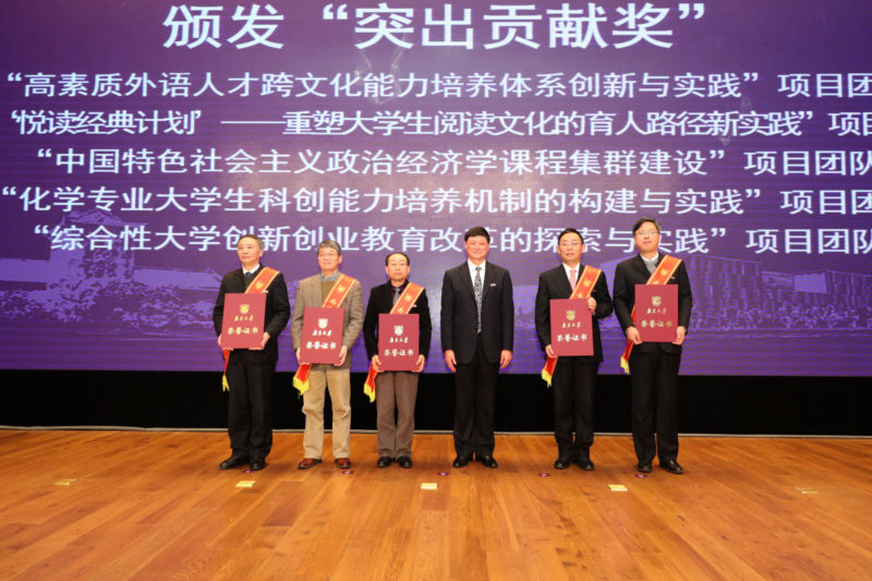 2月21日下午,中共太阳成集团tyc33455cc第十四届委员会第五次全体(扩大)会议暨新学期工作会在仙林校区举行。会上举行了2018年度“突出贡献奖”颁奖仪式。荣获2018 年高等教育国家级教学成果奖一等奖的“中国特色社会主义政治经济学课程集群建设”项目团队获得“太阳成集团tyc33455cc突出贡献奖”。