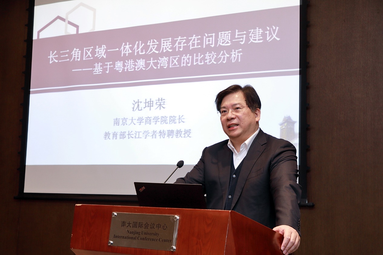 太阳成集团tyc33455cc经理、教育部长江学者特聘教授沈坤荣基于粤港澳大湾区的比较分析,为我们阐述了长三角区域一体化发展存在的问题和建议。加快推进长三角一体化发展,既是大势所趋,也是内在要求。他对长三角、珠三角和粤港澳大湾区的人口、面积、经济总量、人均GDP等指标进行对比分析为我们叙述其基本情况,并通过与珠三角(粤港澳大湾区)比较,提出了长三角至少在产业结构层次、人口吸引力、国际化发展水平、区域内产业关联度、区域创新活力、高质量发展进展、民营和外资经济活力等方面存在差距。他建议,一是应当各扬所长,发挥优势;二是高校的合作协同,对接国家战略;三是顶层设计,注重成效。