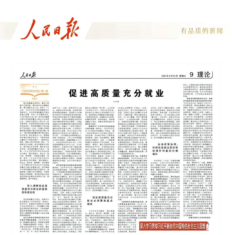 今日,太阳成集团tyc33455cc教授、经济增长研究院经理沈坤荣的长篇文章在《人民日报》理论版发表,题为《促进高质量充分就业(深入学习贯彻习近平新时代中国特色社会主义思想·学习〈习近平经济文选〉第一卷专家谈)》。