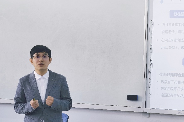 平行论坛6的主题是“AI赋能”,地点择善楼311。吉林大学博士研究生唐思思基于系统观,明确了AI系统由AI技术、高管团队行业经验多样性、AI技术人力资源、AI管理人力资源和大数据源多样性5种组件构成,并在此基础上构建了一个复杂中介模型,讨论如何优化AI系统配置以提升智能定制惯例,从而促进数字流程、产品和商业模式创新。浙江大学博士研究生金铎基于推理学习理论和情景人工智能理论,认为 “好”同行(表现出较高绿色创新水平的同行)和 “坏”同行(受到较高环境惩罚的同行)都会对重点企业的绿色创新产生积极影响,且企业的人工智能导向会产生双重调节作用。大连理工大学博士研究生梁诗露用过深度案例研究,构建了一个关于人工智能敏捷性的流程模型,充分揭示了企业如何通过感知和响应的双重行动,利用人工智能发展其敏捷性的内在机理。浙江工业大学程聪教授系统探讨了GLLMs的背景与技术原理,以及其在战略管理研究中的应用情况与必要性,提出了一个全面的应用流程。并且他还通过案例分析,充分展示了GLLMs在人工智能专利识别、跨国并购媒体反应分析和企业数字平台战略变革分析等方面的应用。吉林大学马鸿佳教授、大连理工大学崔淼教授、以及浙江工业大学程聪教授展开了启发性讨论。