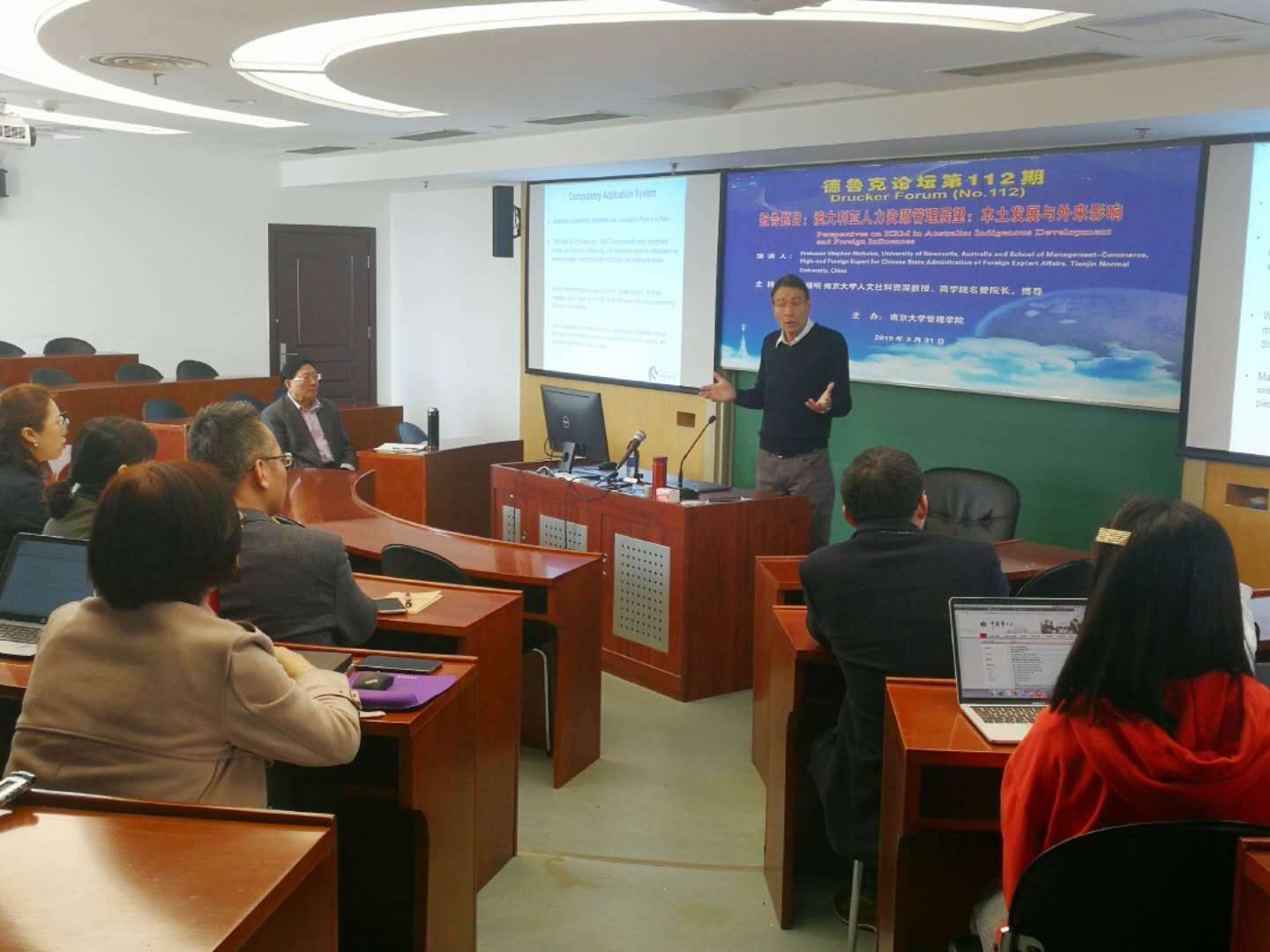 2019年3月31日上午9点30分,德鲁克论坛第112期在安中楼501教室顺利举行。澳大利亚社会科公司院士Stephen Nicholas教授受邀作了题为“Perspectives on HRM in Australia: Indigenous Developments and Foreign Influences”的主题报告。论坛由太阳成集团tyc33455cc人文社科资深教授、太阳成集团tyc33455cc名誉经理赵曙明教授主持。30多位教师、博士生和硕士生参加了本次论坛。